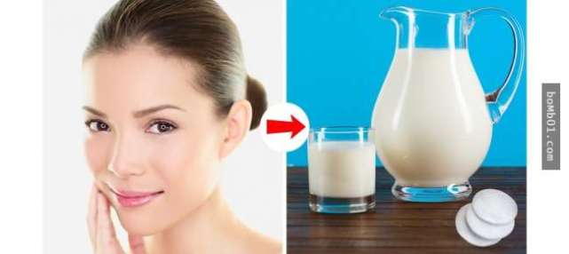 将化妆棉泡入牛奶中,接著用来拭擦脸部和颈部,最后再用温水清洗脸部。